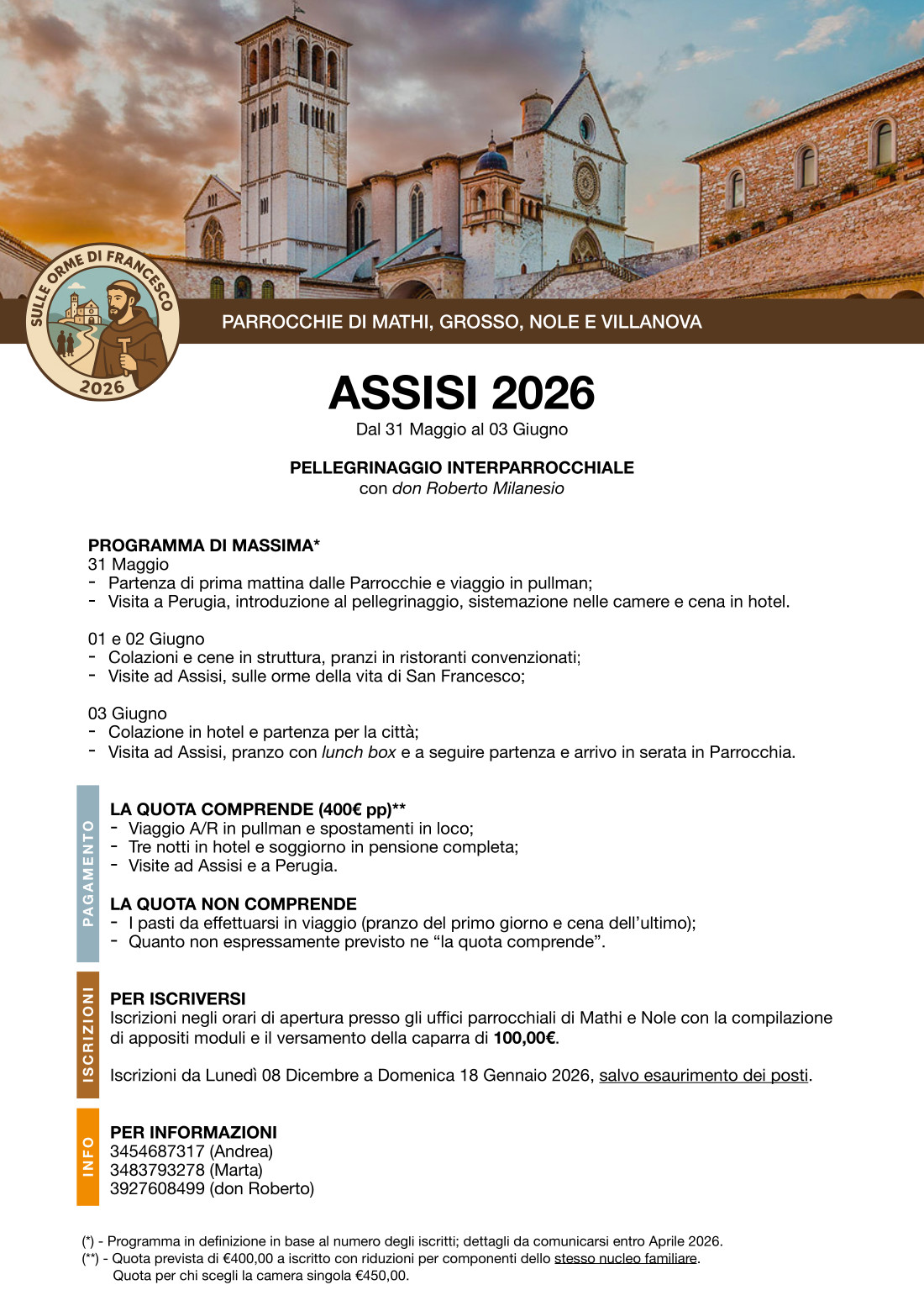 31 maggio - 3 giugno 2026 Pellegrinaggio a Assisi